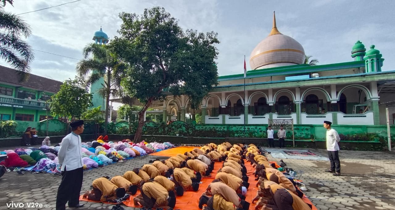 Setelah itu, siswa mengikuti kegiatan DUHAJI (Sholat Dhuha, Hafalan, dan Mengaji) yang dilaksanakan secara tertib di halaman madrasah. Kegiatan ini menjadi sarana penguatan karakter religius, kedisiplinan ibadah, serta penyeimbangan aspek kognitif dan spiritual dalam proses pendidikan.